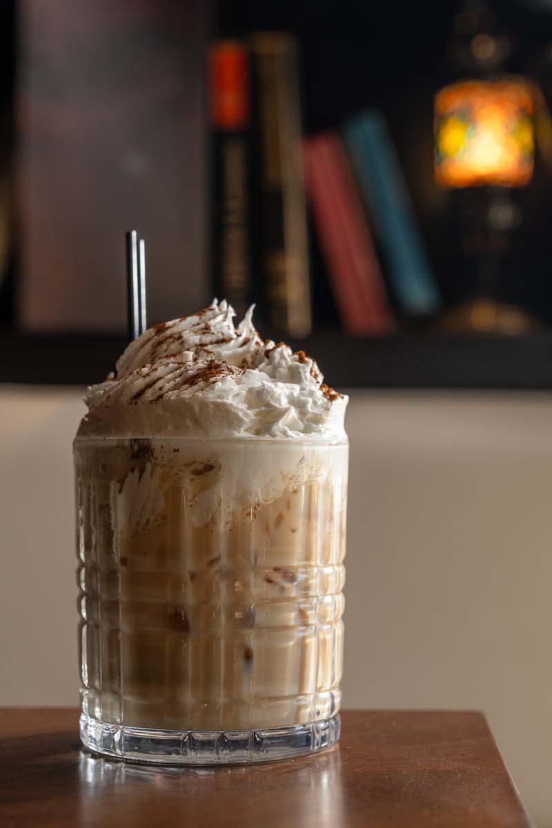 Finely ground Turkish coffee (dark-roasted, cardamom-kissed) cold-steeped 24 hours in a cheesecloth pouch, no grit, just velvet. Pour over ice with Date syrup and a shot of Jameson. Finish with a cloud of cold-foamed heavy cream and a dusting of the reserved grounds for that final, silky crunch