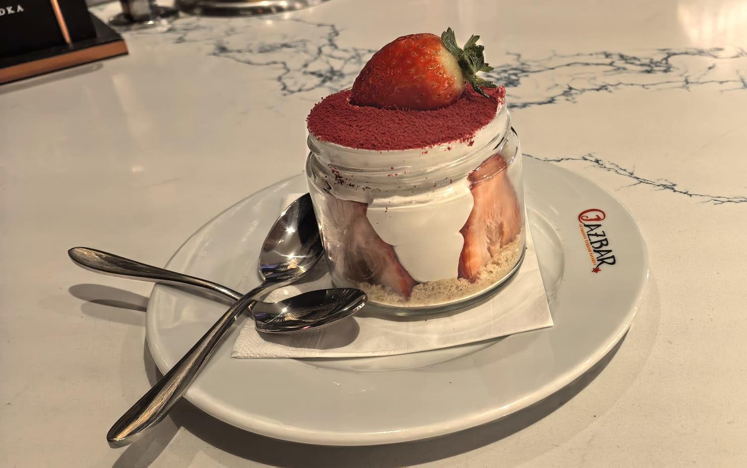 Strawberry ShortCake , Layers of Chocolate Biscuit crumbles, luscious hand Whipped Cream and fresh sliced Strawberries
